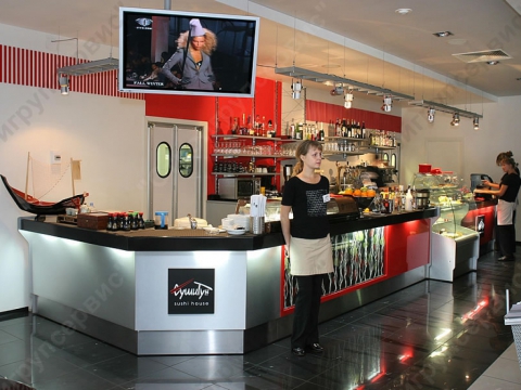 Полный комплекс работ: разработка дизайна-проекта интерьера, полная реконструкция помещения под предприятие общественного питания, общестроительные и отделочные работы.